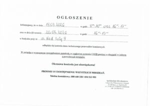 Kontrola stanu technicznego przewodów kominowych w bud. 16-19 os. 700-lecia i bud. 9 os. Nad Sołą