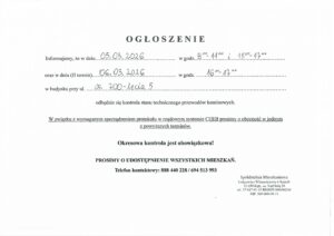 Kontrola stanu technicznego przewodów kominowych w bud. 5 – 8 os. 700-lecia